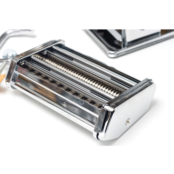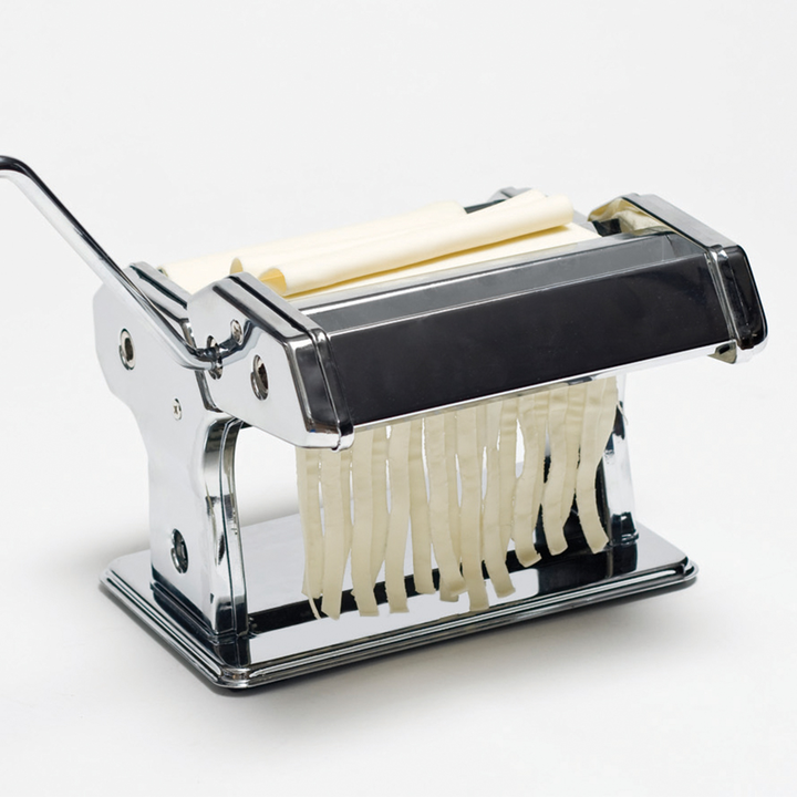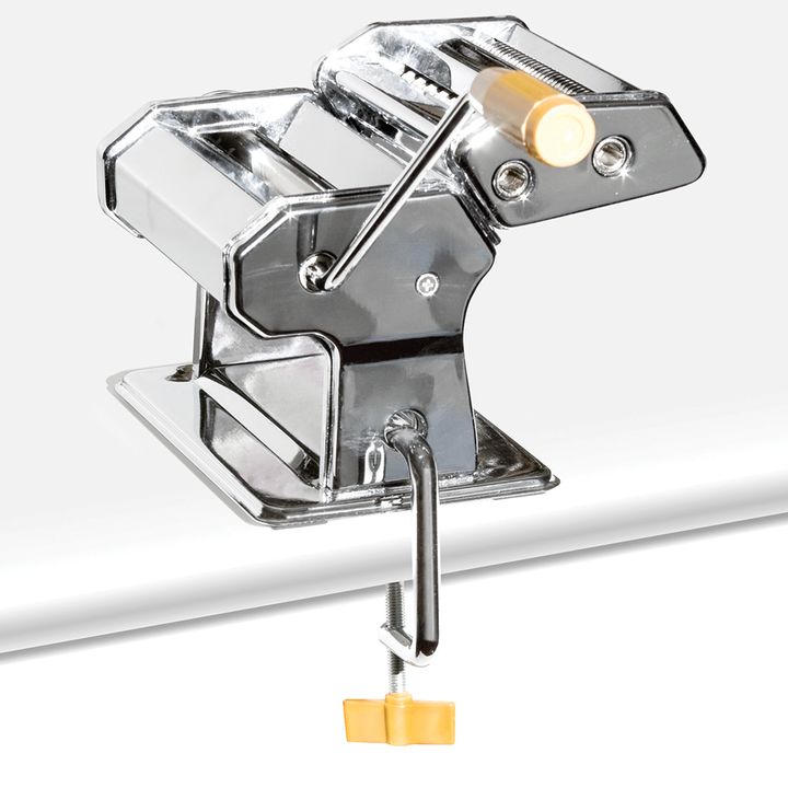 Maquina para pasta Acero Inoxidable -Formada por un cuerpo de acero inoxidable y rodillos lisos para estirar la pasta-Viene con rodillos de corte para spaguetti tagliatelle canelones comidas y otros-Se puede graduar la pasta hasta en 9 espesores diferentes de 0.3 mm hasta 2.5 mm -Trae manivela y pre...