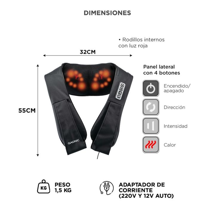 Descubrí el placer y el alivio con nuestro avanzado Masajeador Multifuncional. Diseñado con 8 rodillos giratorios y rotación bidireccional, este dispositivo ofrece un masaje profundo y relajante, ideal para el cuello, hombros, espalda, brazos, piernas y pies. La velocidad variable te permite persona...