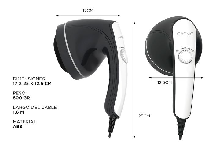 ¡Nuevo masajeador de Mano Gadnic! Este masajeador eléctrico es todo lo que necesitas para relajarte después de un largo día en el trabajo. La tecnología de percusión puede ayudar a aliviar el dolor en los pies, pantorrilla, cuello, hombros, espalda, músculo, brazos y piernas. Fácil de usar y ergonóm...