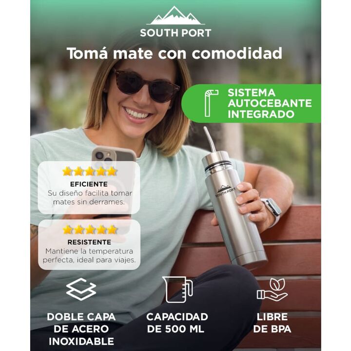 Cebado automático sin inclinar el termo: El termo mate autocebante permite servir mate de forma práctica gracias a su sistema integrado, evitando derrames y facilitando el uso diario tanto en casa como en movimiento. Temperatura constante para disfrutar cada mate: Funciona como un termo tradicional,...