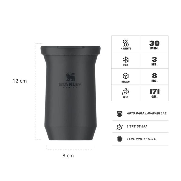 El nuevo mate Stanley tiene una capacidad de 200 ml e incluye una tapa protectora, ideal para transportar la yerba. El mate mantiene la temperatura durante toda la cebada. Es práctico e higiénico. Si el producto es comprado en Argentina la garantía es de por vida; siempre y cuando cumpla con los req...