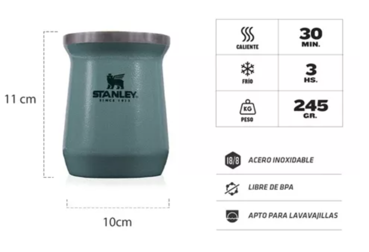 MATE STANLEY ACERP INOXIDABLE TERMICO 236ML REX 10-09628-001 El Mate Stanley 236 ml es un accesorio icónico que ha demostrado ser práctico y fácil de limpiar, además de mantener la temperatura durante toda la cebada,lo convierte en un elemento indispensable para los amantes del mate. DETALLES: - Apt...
