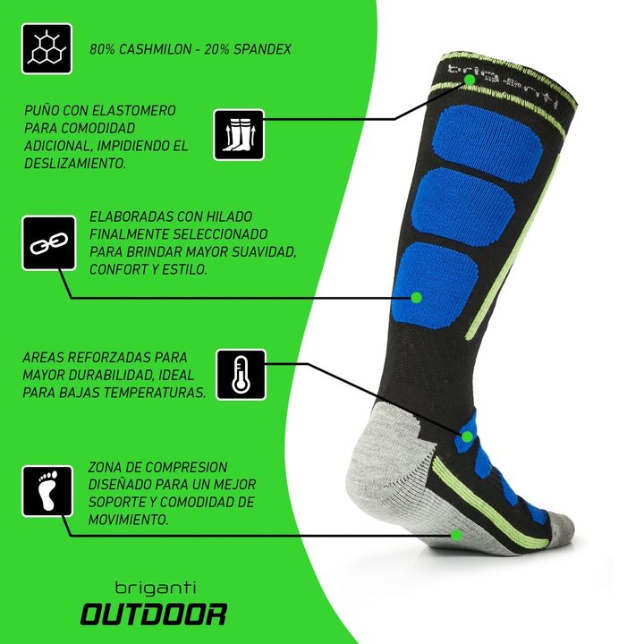 Medias de hombre fabricadas con cashmilon de primera calidad. Puño con elastómero para comodidad adicional, impidiendo el deslizamiento. Elaboradas con hilado finamente seleccionado para brindar mayor suavidad, confort y estilo. Areas reforzadas para mayor durabilidad. Ideal para bajas temperaturas...