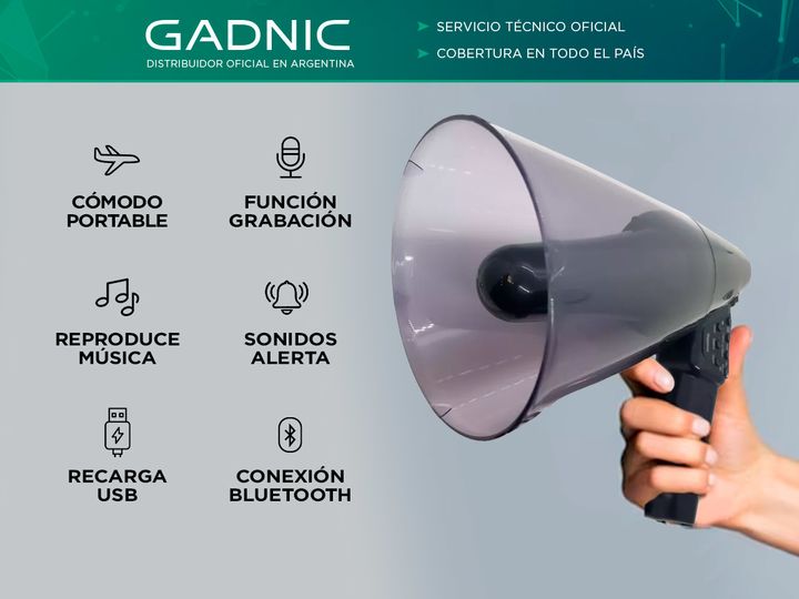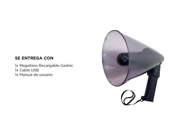 Gadnic presenta el nuevo Megafono Recargable USB, que no solo amplificará tu voz con claridad y potencia, sino que también te ofrece características avanzadas que lo convierten en la herramienta perfecta para cualquier ocasión. Grabación Integrada: Con la función de grabación incorporada, ahora pode...