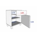 Mesa de luz estilo minimalista. Melamina de 15 mm. Sistema Minifix. Patas plásticas. Un cajón con correderas metálicas. Una puerta con sistema de apertura Push. Un estante interior. Combinado en Olmo Finlandés con Everest. Medidas: Ancho: 0.52 mts. Alto: 0.63 mts. Profundidad: 0.36 mts. Producto s...