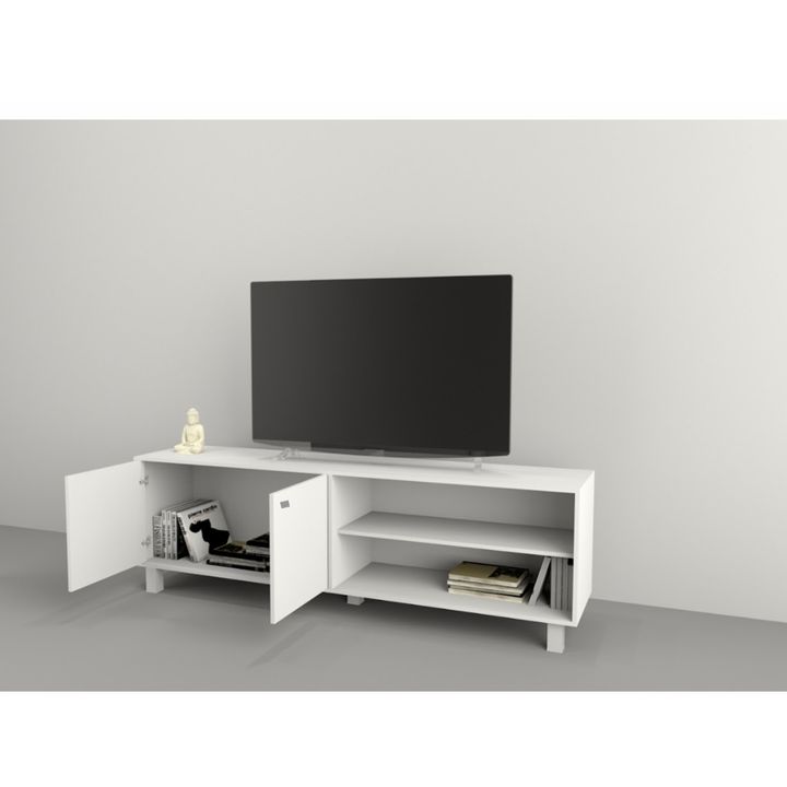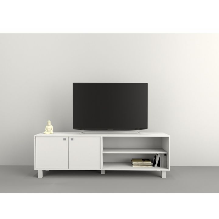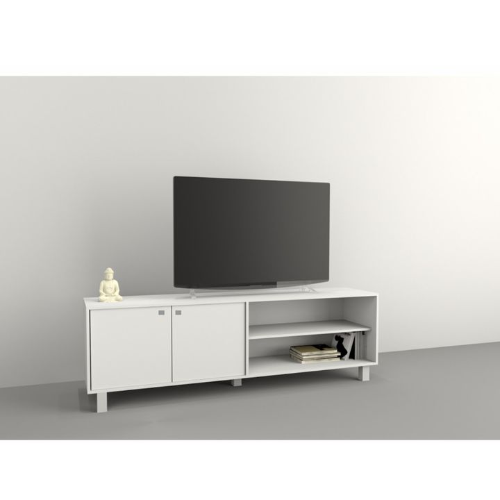 Cantidad de puertas: 2 Cantidad de estantes: 1 Sistema push en puertas. Peso: 35 Kg. Sistema Minifix. Bisagras metálicas. Patas plásticas con Laca UV. Melamina de Alta Resistencia. Se entrega en caja para armar. Medidas: Ancho: 1.80 mts. Alto: 0.52 mts. Profundidad: 0.36 mts.
