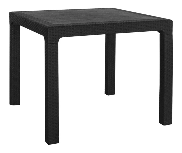 Agregá estilo y practicidad a tus espacios con esta mesa ratan cuadrada de 90x90 cm. Fabricada en plástico reforzado con terminación símil ratán, es resistente, liviana y fácil de limpiar. Ideal para interiores o exteriores.