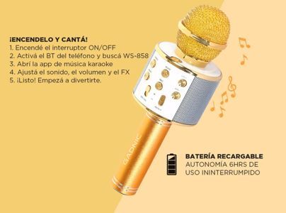 IDEAL KARAOKE ¡100% Inalámbrico! Práctico y versátil, fácil de usar, con parlante incorporado y sin conexiones adicionales... ¡ideal para reuniones con amigos y familia! ALTA COMPATIBILIDAD Para usar con tu celular, computadora o tablet. Compatible con cualquier dispositivo Bluetooth, incluyendo tel...