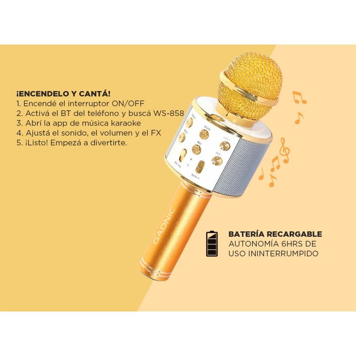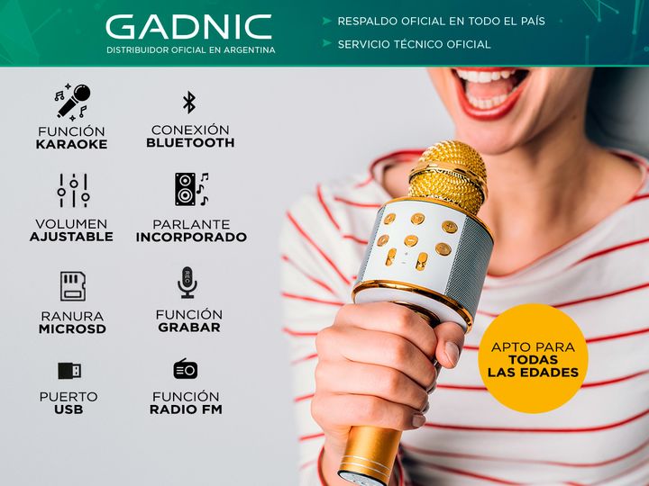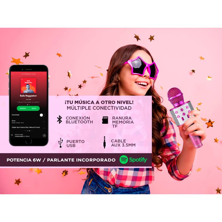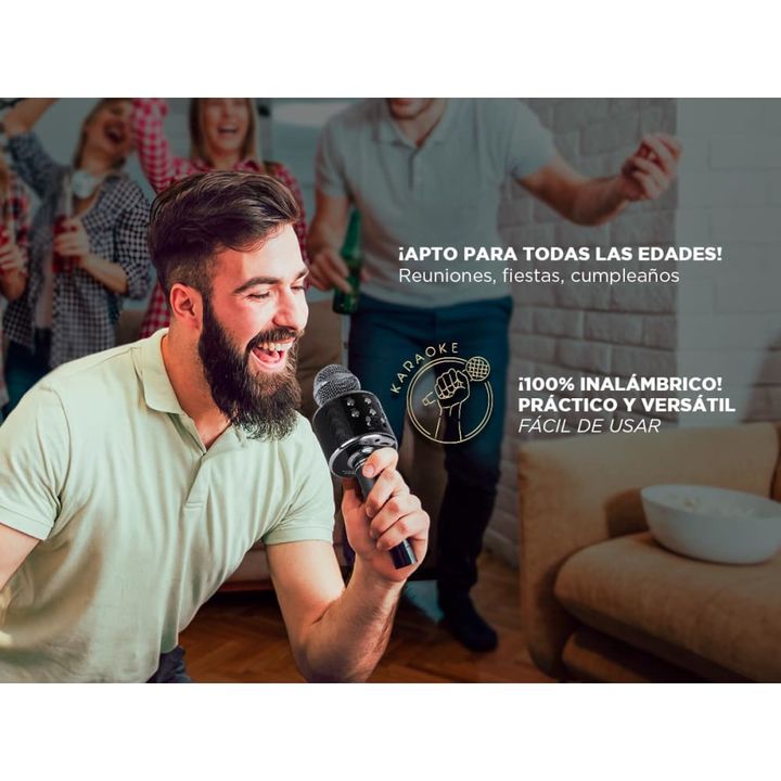 IDEAL KARAOKE ¡100% Inalámbrico! Práctico y versátil, fácil de usar, con parlante incorporado y sin conexiones adicionales... ¡ideal para reuniones con amigos y familia! ALTA COMPATIBILIDAD Para usar con tu celular, computadora o tablet. Compatible con cualquier dispositivo Bluetooth, incluyendo tel...