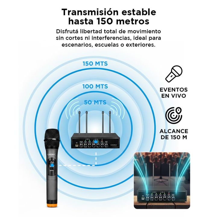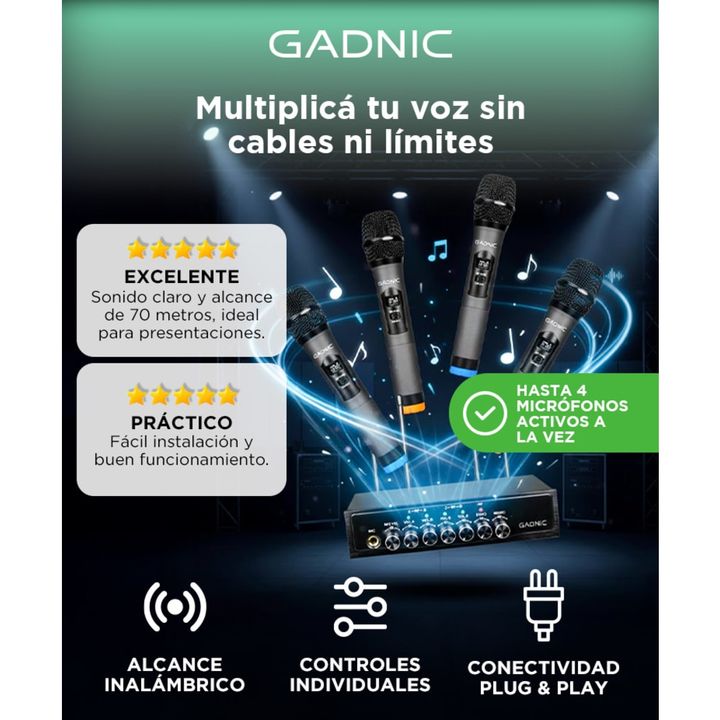 ¡Gadnic presenta su nueva línea de micrófonos inalámbricos Bluetooth! El diseño inalámbrico le permite ir más allá de lo que lo harías con un micrófono con cable, podrás desplazarte sin ninguna preocupación gracias a sus 150 mts de alcance. Llevá tus sentidos al máximo experimentando ésta línea de m...