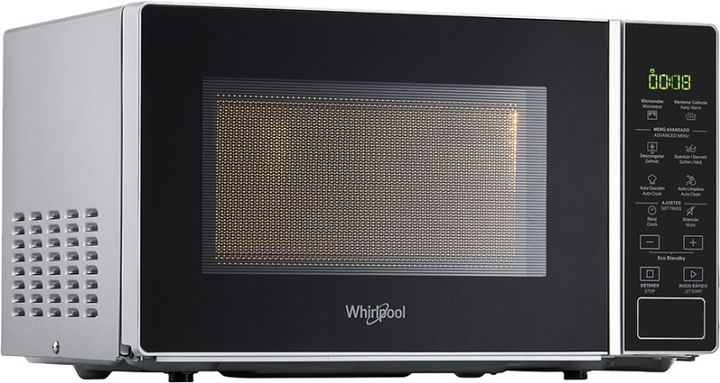 MIC 20L WMS20BS 1200W PL WHIRLPOOL -Keep Warm (mantener caliente) Esta opción permite mantener caliente los platos hasta por 60 minutos antes de servirlos, dentro del microondas, sin necesidad de volver a calentarlos. -Auto Cook (Cocción automática) Selección de recetas automáticas con valores prede...