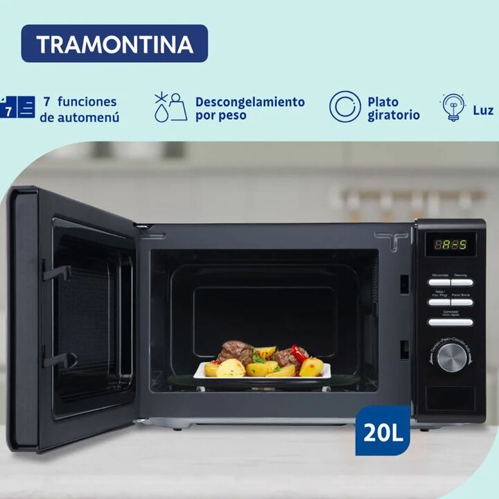 Microondas Glass Cook de 20 litros, un electrodoméstico versátil y eficiente, diseñado para facilitar tus cocciones o comidad diarias. Es ideal para preparar, recalentar o descongelar una variedad de platos, adaptándose a las necesidades de cocineros express y amantes del buen comer Potencia ajustab...