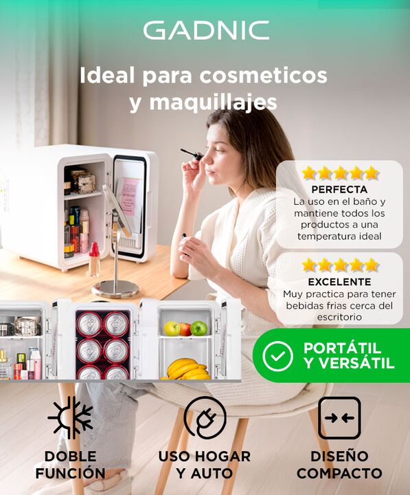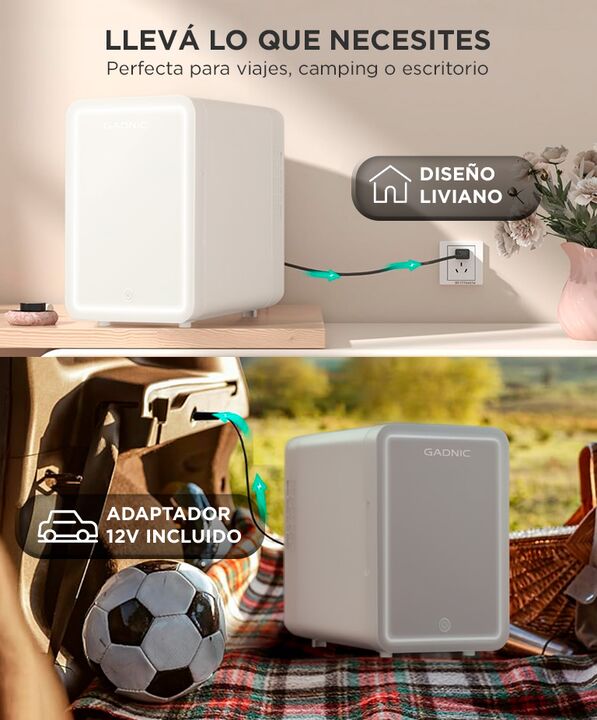 Frío y calor en un solo equipo: La mini heladera Gadnic 6L incorpora sistema semiconductor que permite enfriar hasta 10–20 °C por debajo del ambiente o mantener calor hasta 75 °C, adaptándose a distintas necesidades diarias. Portabilidad real para hogar y auto: Diseñada para usarse tanto en casa com...