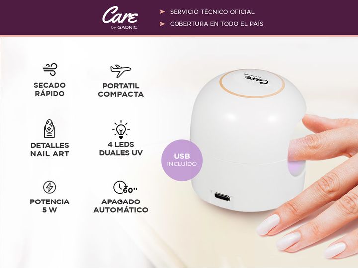 ¡Nueva Mini Lámpara de Secado Rápido! La línea Care by Gadnic continua ampliándose y presenta la mini lámpara de manicura Específicamente diseñado: con la calidad en mente, esta luz de secado flash ha sido especialmente diseñada para la aplicación de los sistemas de extensión de nail art, es una her...