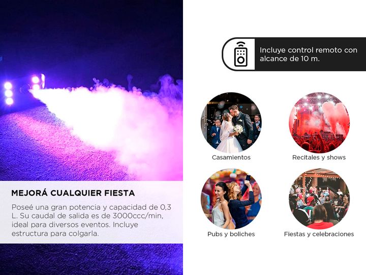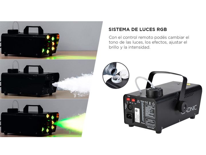 Nueva Maquina de Humo Con Luz RGB By Gadnic No es solo una maquina de humo, también posee 3 luces LED con efectos e intensidad regulable. Para mejorar cualquier para fiesta, escenario, shows y mucho más Máquina de niebla de alta potencia a gran escala, gran fuerza de pulverización, gran cantidad de ...