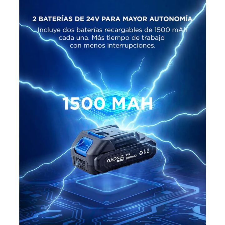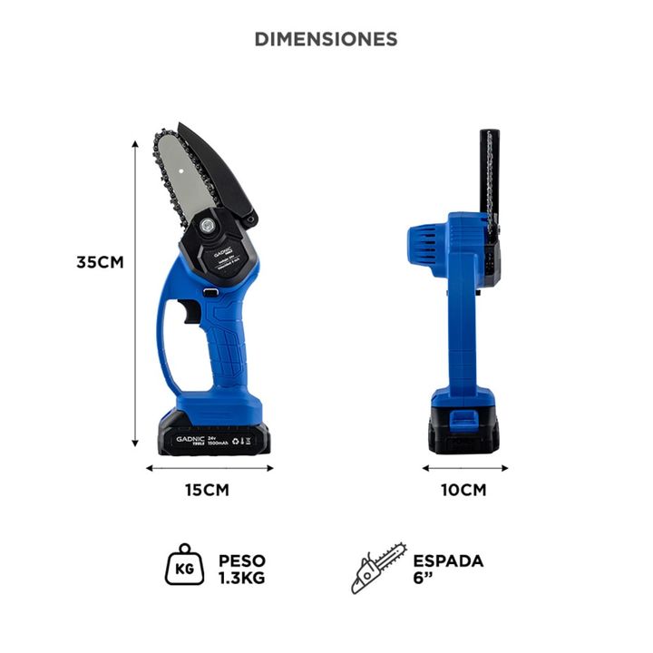 ¡ Gadnic Presenta La Nueva Mini Motosierra Recargable MS2400 ! La mini motosierra Gadnic MS2400 está equipada con un motor de cobre puro y 2 baterías de 21 V 1500mAh de alta potencia. Solo tarda unos 10 segundos en cortar los troncos con un diámetro de aproximadamente 10 Cm. Es adecuada para cortar ...