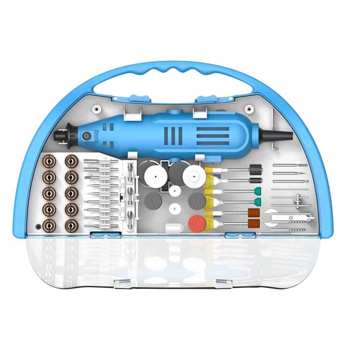El minitorno Gamma G19501AC de 1300 watts es una herramienta potente y versátil, ideal para múltiples aplicaciones. Incluye 119 piezas para diversas tareas y trabajos de precisión.