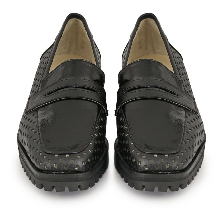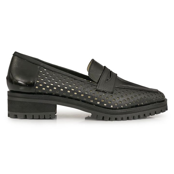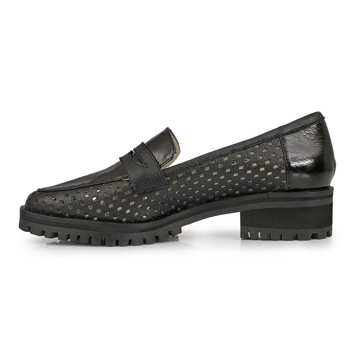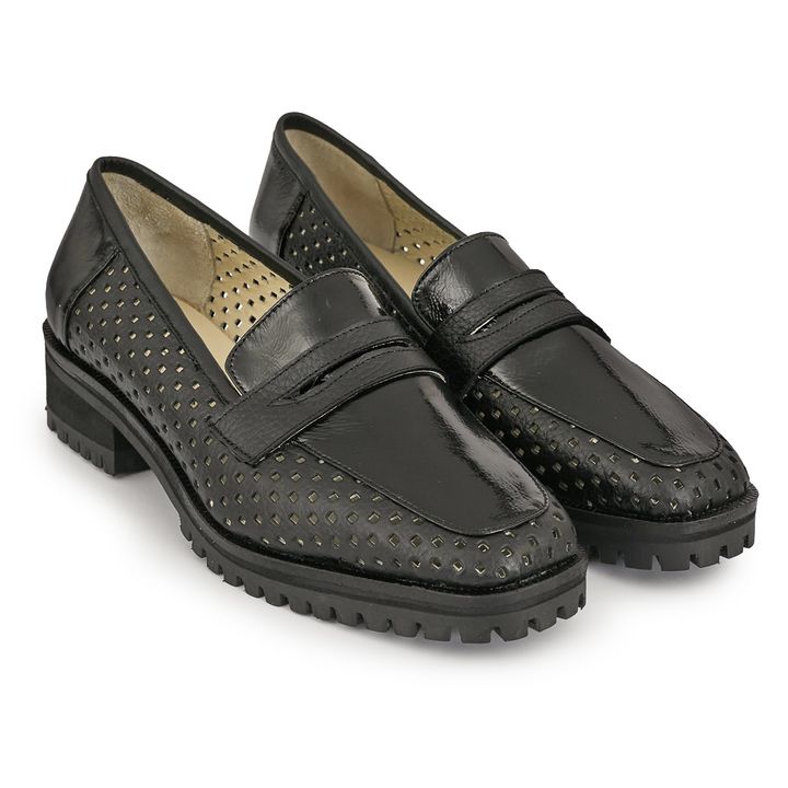 Confeccionada con una combinación de cuero y charol, Anita refleja elegancia, sofisticación y comodidad. Su diseño incluye una base antideslizante de goma, para poder desplazarte sobre cualquier superficie, y una plantilla acolchada, para brindarte comodidad en todo momento. El Mocasín Anita cuenta ...