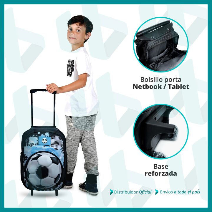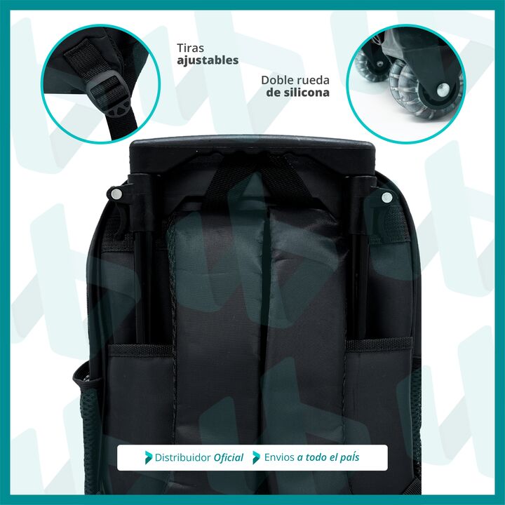 MOCHILA ESCOLAR CARRITO CON RUEDAS SILICONA 14 - Mochila con carrito para Preescolar y Nivel Inicial - Amplio compartimiento central - Bolsillo Intermedio Grande - Bolsillo Intermedio Mediano - 2 Bolsillos laterales de red Porta Botellas. - Manija con altura máxima de 67 cm - Ruedas de silicona - Su...