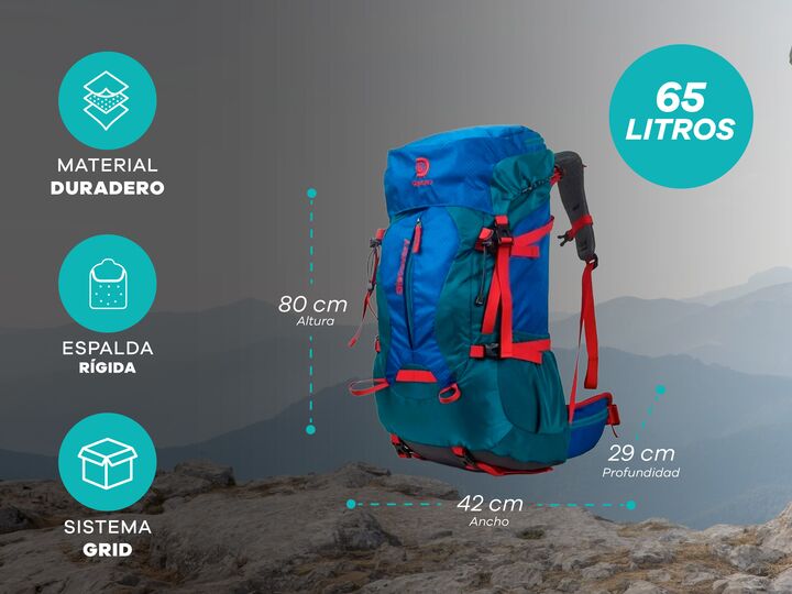 MOCHILA DE CAMPING 65 DISCOVERY SISTEMA GRID SILBATO Excelente mochila de Camping Discovery. Es muy espaciosa, cuenta con sistema grid, varios ajustes para una óptima distribución de peso y un diseño ergonómico para mayor comodidad durante el uso. CARACTERÍSTICAS PRINCIPALES -Capacidad ideal para tr...