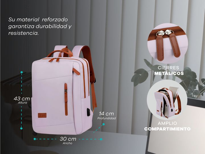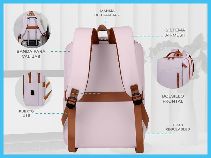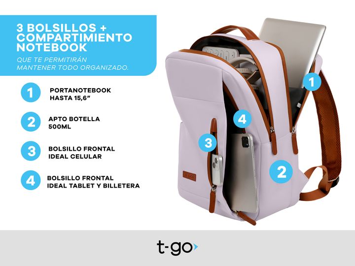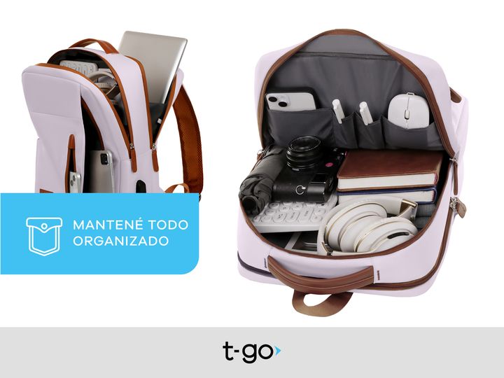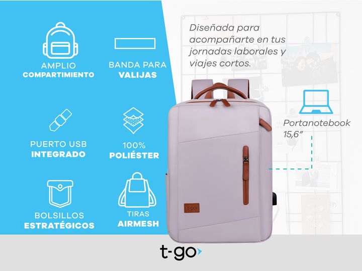 MOCHILA ESTETICA URBANA PORTANOTEBOOK -Material premium: tela de poliéster con detalles en eco cuero y sistema air mesh en las correas para máxima comodidad. -Sistema repelente al agua. -Compartimiento exclusivo para notebook de hasta 15.6 pulgadas -2 bolsillos frontales amplios para acceso rápido. ...