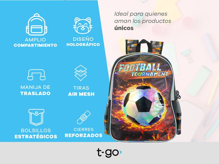 MOCHILA ESCOLAR PARA PRIMARIA 16 PULGADAS REFORZADA -Compartimiento principal superamplio. -1 bolsillo frontal con cierre. -2 bolsillos laterales de red porta botella u otros accesorios. -Tiras de espalda acolchadas air mesh. -Cierres resistentes con tiradores. -Fabricadas con poliéster extra reforz...