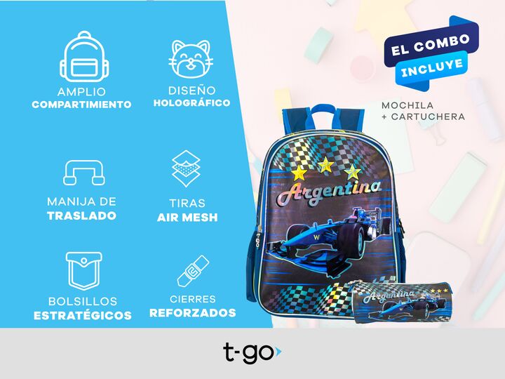 Kit de Mochilas escolar con cartuchera. Ambos productos están confeccionados con materiales de calidad para garantizar durabilidad para todo el ciclo escolar. Además, poseen unos diseños variados que les encantarán a los más pequeños. CARACTERÍSTICAS PRINCIPALES MOCHILA -Compartimiento principal sup...