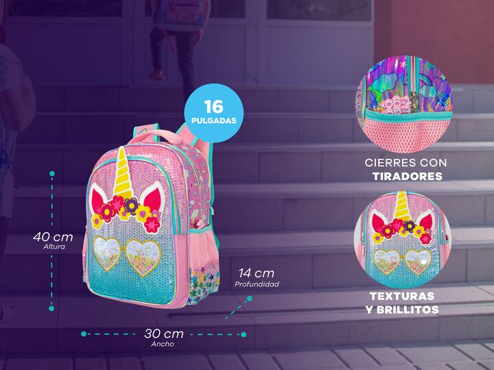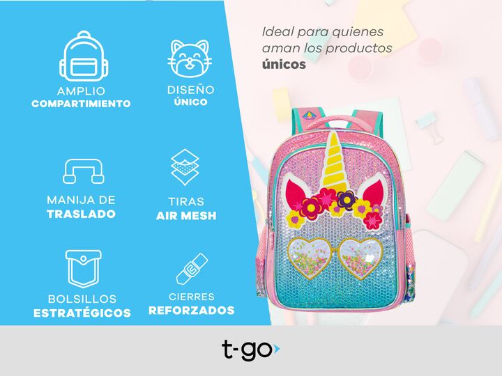 Hermosas mochilas escolares con diseños adorables. Tienen amplia capacidad para que lleven todo lo necesario, costuras reforzadas y varios bolsillos. Que la vuelta a clases sea con una mochila divina y confiable. CARACTERÍSTICAS PRINCIPALES. -Compartimiento principal super amplio. -Un bolsillo front...