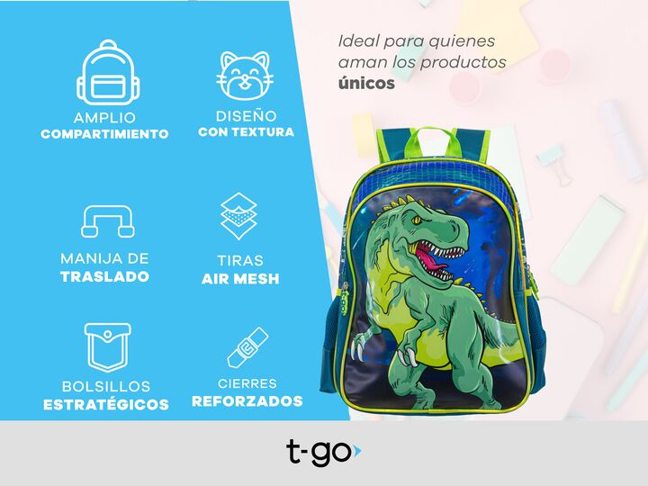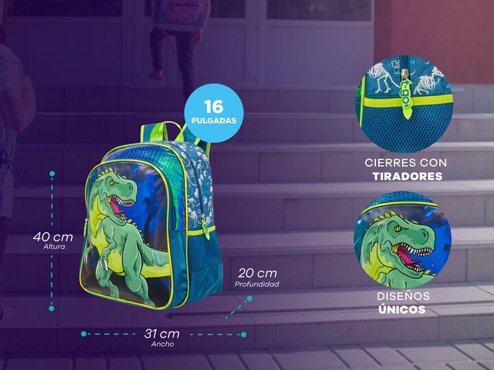 MOCHILA ESCOLAR PARA PRIMARIA 16 PULGADAS REFORZADA -Compartimiento principal superamplio. -1 bolsillo frontal con cierre. -2 bolsillos laterales de red porta botella u otros accesorios. -Tiras de espalda acolchadas air mesh. -Cierres resistentes con tiradores. -Fabricadas con poliéster extra reforz...
