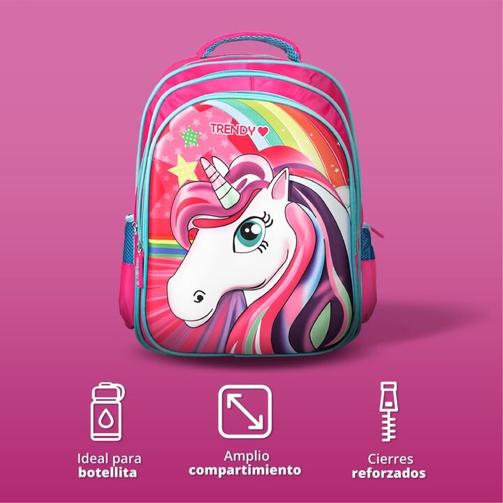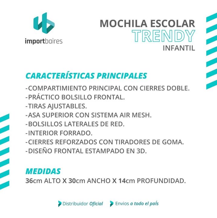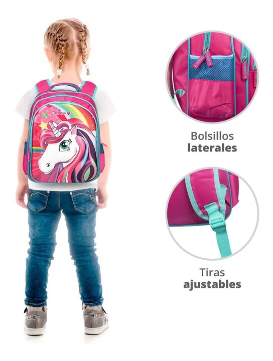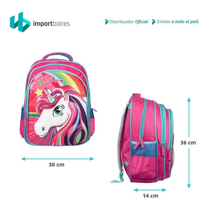 MOCHILA TRENDY ESCOLAR -Ideal para jardín de infantes y 1er ciclo de primaria -Compartimiento principal con cierre doble -Practico bolsillo frontal -Tiras Ajustables -Asa superior con Air Mesh antitranspirante -Bolsillos laterales del red -Interior forrado -Cierres reforzados con tiradores -Diseño e...