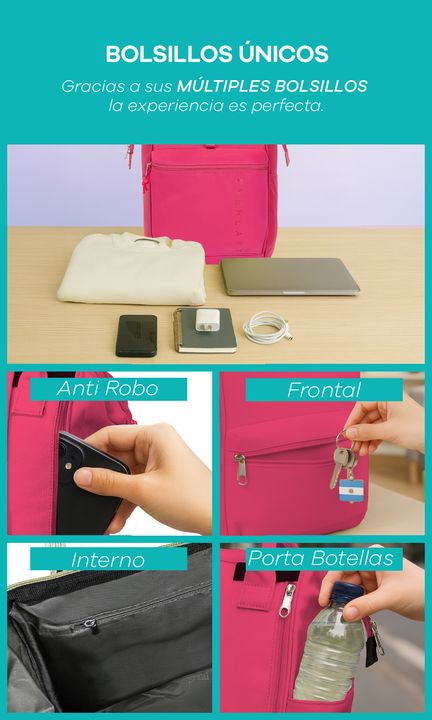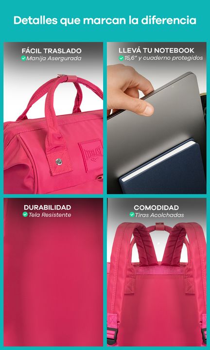 Mochila Everlast Mujer Boca de Pez Nylon Satinado Urbana Moda 22583 Fucsia