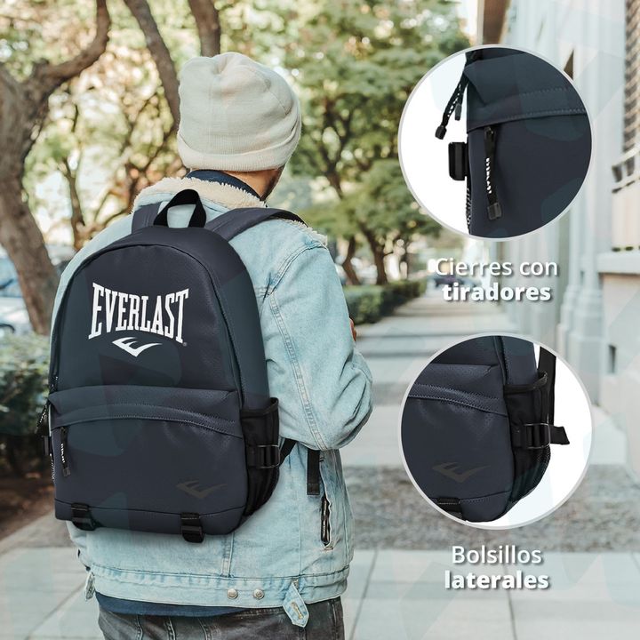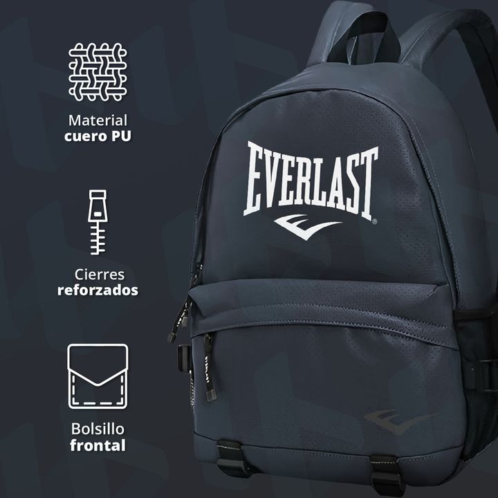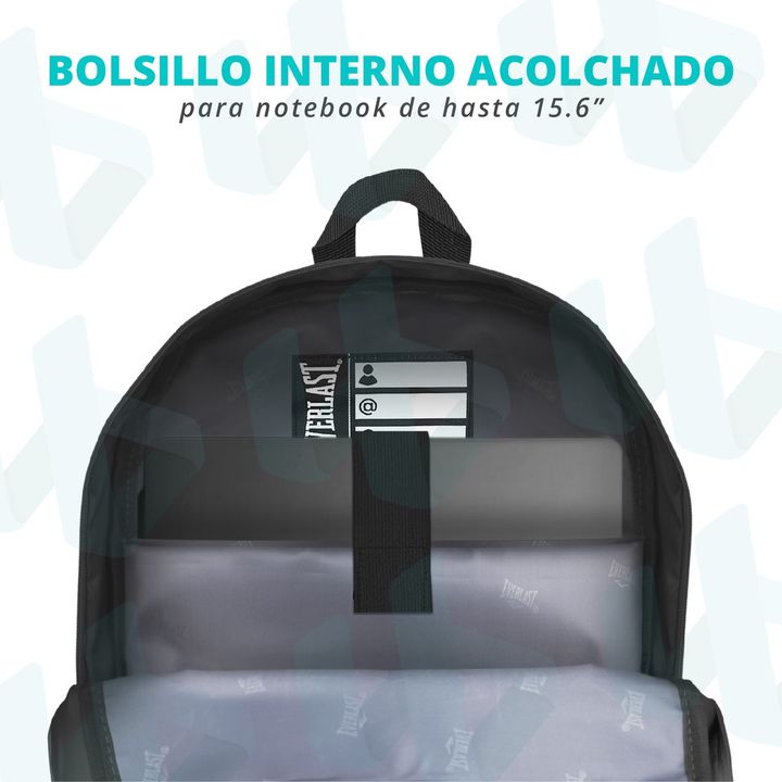 MOCHILA EVERLAST URBANA CON SEPARADOR PARA NOTEBOOK -Amplio compartimiento principal. -Confeccionada con cuero pu microperforado. -Bolsillo porta notebook acolchado con traba de velcro para un dispositivo de hasta 15,6 pulgadas. -Bolsillo frontal con cierre. -Capacidad para cuaderno universitario, f...