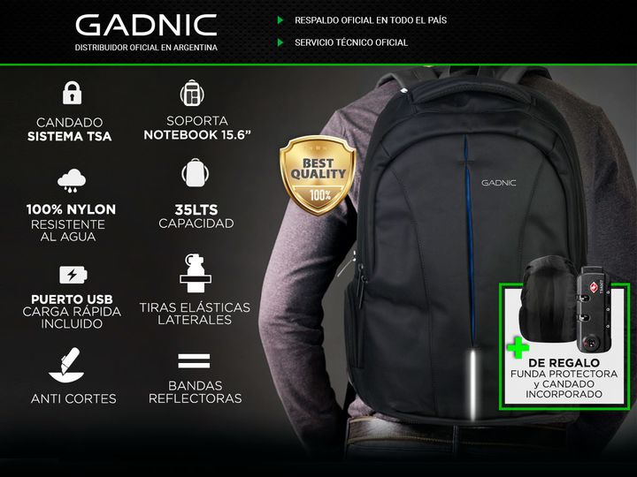 Presentamos la mochila antirrobo Gadnic, una opción totalmente impermeable que protege tus valiosos equipos en cualquier situación. Diseñada para llevar todo lo que necesitas, esta mochila está fabricada con los mejores materiales para asegurar la máxima protección. Además de su funcionalidad como m...