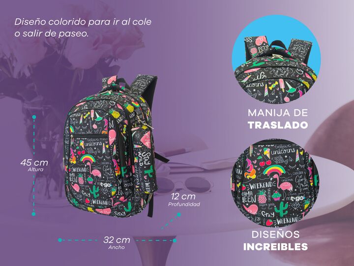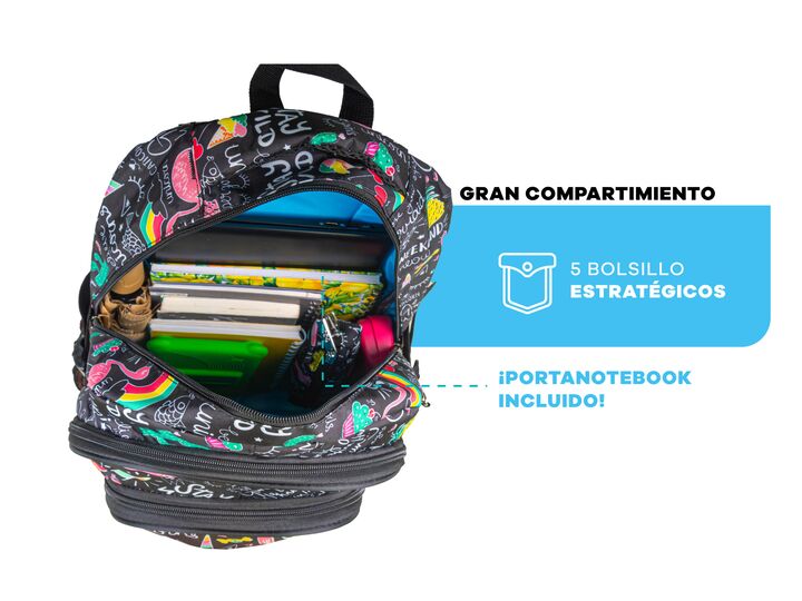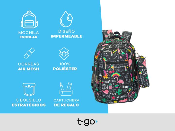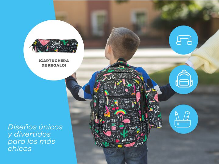 MOCHILA ESCOLAR CON CARTUCHERA A TONO Esta mochila con 5 bolsillos súper prácticos es perfecta para que tus hijos lleven todo lo que necesitan sin perder estilo. Con una gran capacidad de carga, facilita la organización de sus pertenencias, protege sus libros de la lluvia, asegura su comodidad duran...