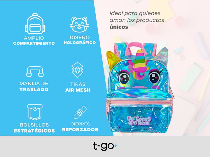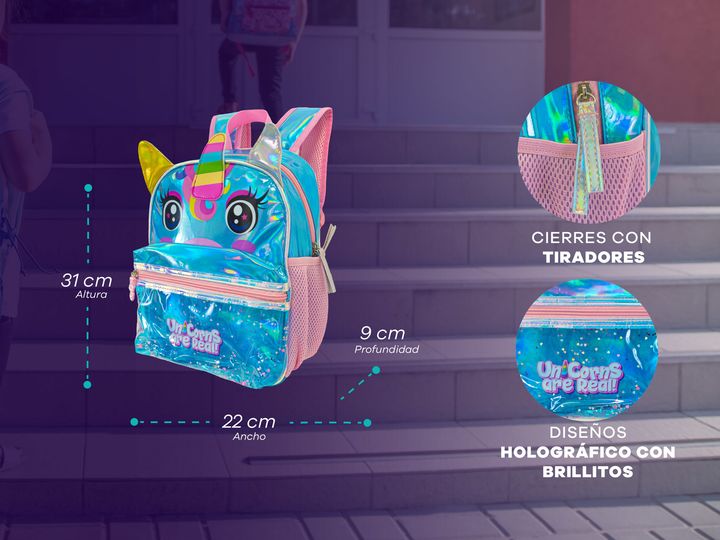 Hermosas mochilas infantiles para nivel inicial, jardín o preescolar. Poseen un diseño holográfico que hace que destaquen fácilmente y 3 bolsillos para que todo viaje organizado. CARACTERÍSTICAS PRINCIPALES -Compartimiento principal con espacio para todos los elementos que precisan llevar. -Bolsillo...