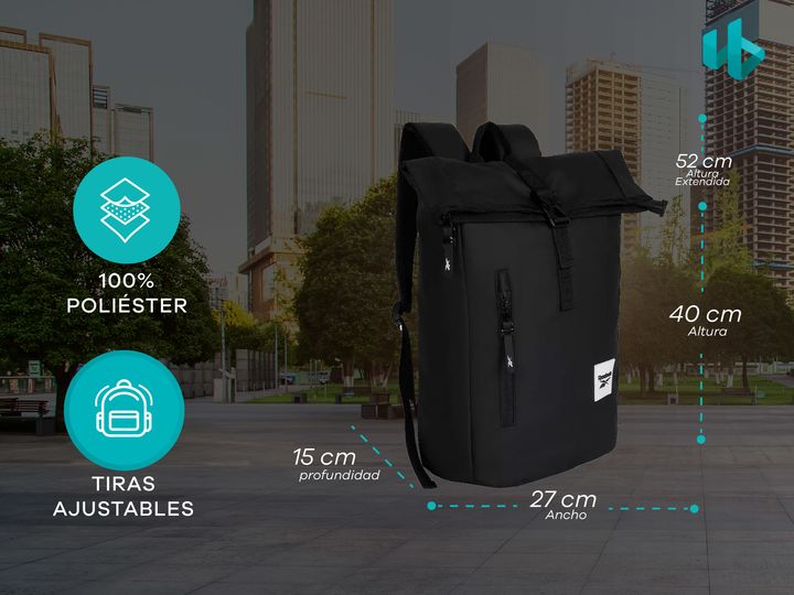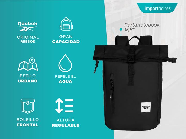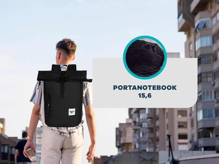 Mochila urbana roll top de Reebok. Posee un amplio compartimiento principal con separador para una notebook de hasta 15,6 pulgadas. Tiene espalda acolchada y con tela respirable para mayor comodidad. Además, cuenta con un bolsillo frontal para accesorios. CARACTERÍSTICAS PRINCIPALES -Compartimento p...
