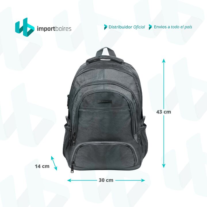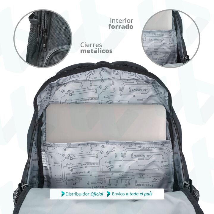 MOCHILA URBANA IMPORTADA BAGCHERRY PARA NOTEBOOK -Compartimiento con separador para notebook de hasta 15,6 pulgadas. -Capacidad para guardar carpetas y cuadernos A4. -Cuatro bolsillos secundarios al frente. -Dos bolsillos laterales con red. -Cinchas ajustables laterales. -Espaldar con malla de red a...