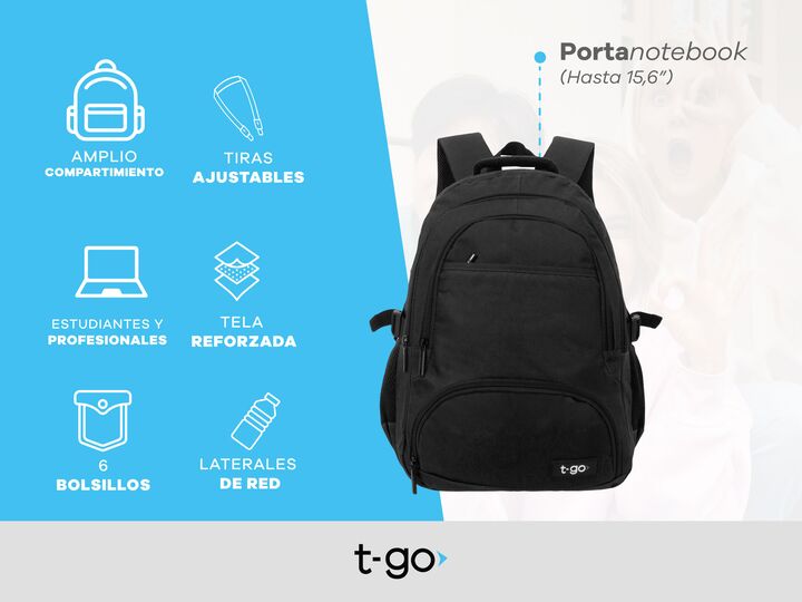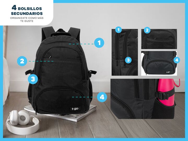 MOCHILAS PORTANOTEBOOK 15,6 PULGADAS CON 4 BOLSILLOS - Amplio compartimiento central - Compartimiento acolchado para Notebook hasta 15,6 pulgadas - Múltiples Bolsillos al frente - Medida: 46 cm alto x 36 cm ancho x 13 cm profundidad - Bolsillos laterales porta botellas - Cinchas ajustables laterales...