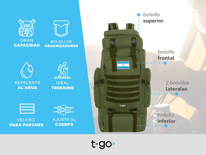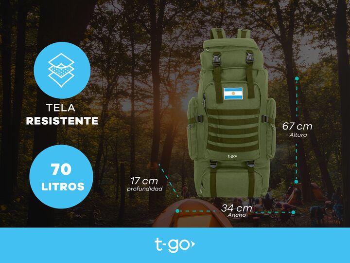 MOCHILA DE CAMPING T-GO 70 LITROS CON AJUSTE ABDOMINAL * Ideal para viajar, recorrer senderos, trekking, montañismo y muchas actividades más * La mejor opción para quienes precisan capacidad de carga grande * Diseñada para que puedas llevar todo lo que necesites en tus viajes CARACTERISTICAS PRINCIP...