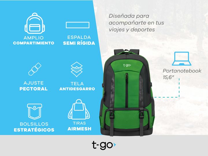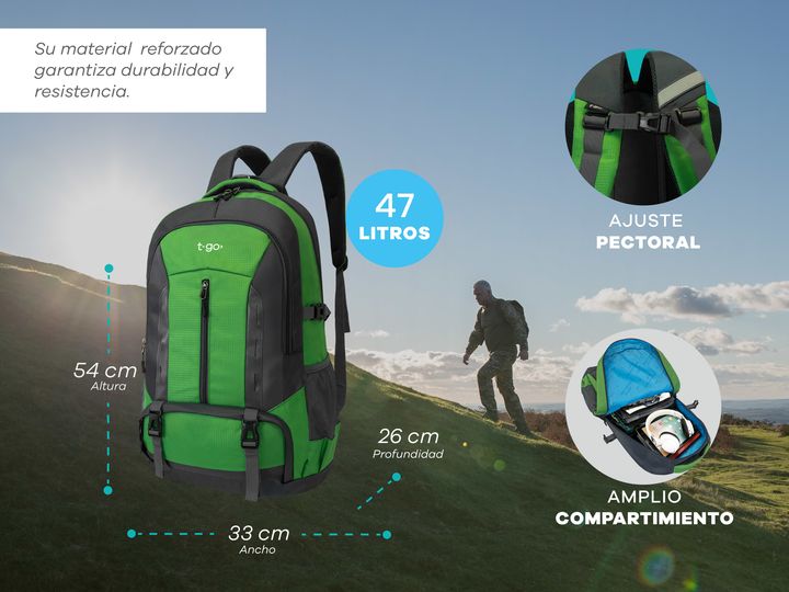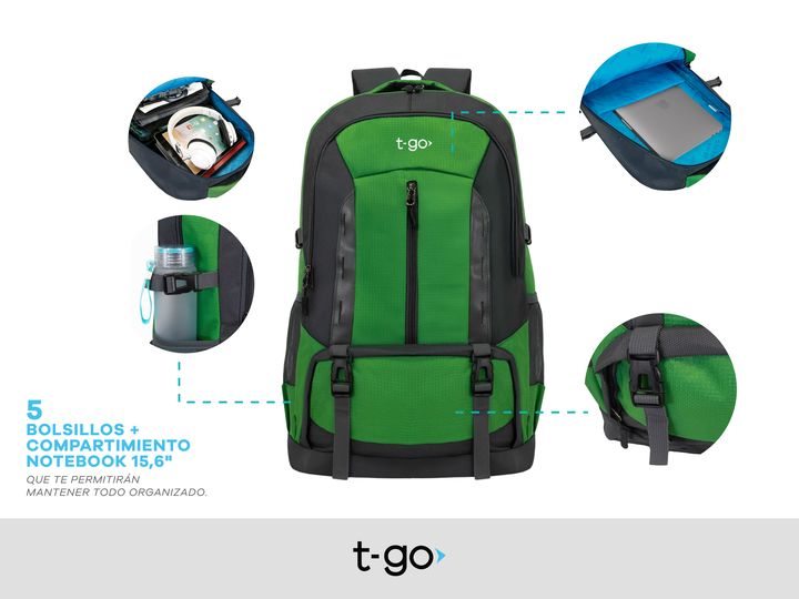 MOCHILA DE VIAJE 47 LITROS T-GO CAMPING TREKKING Mochila de viaje, camping con múltiples bolsillos . Fabricada en Nylon ripstop resistente al desgaste. Sistema Air mesh en la espalda y correas para una ventilación óptima. Ideal para trekking y/ viajes cortos ya que es apta como equipaje de cabina. -...