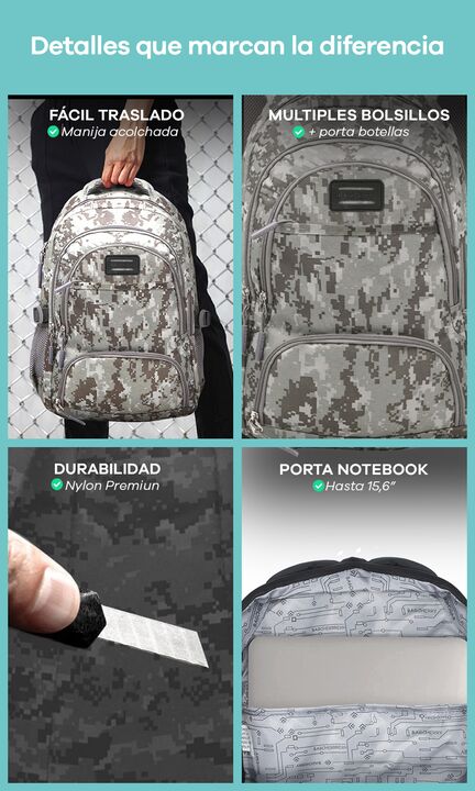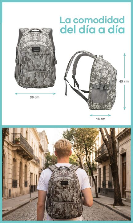 MOCHILA URBANA PORTANOTEBOOK 15,6 PULGADAS CON BOLSILLOS FRONTALES - Amplio compartimiento central - Compartimiento para Notebook hasta 15,6 pulgadas - Múltiples Bolsillos al frente - Medida: 45 cm alto x 30 cm ancho x 18 cm profundidad - Bolsillos laterales - Cinchas ajustables laterales - Confecci...