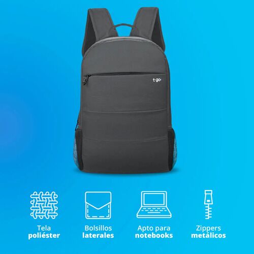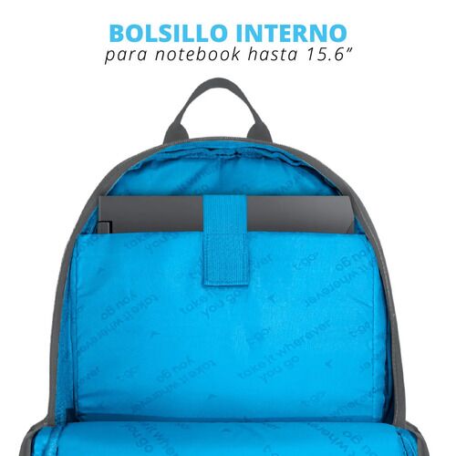 MOCHILA PORTANOTEBOOK 15,6 PULGADAS ACOLCHADA - Amplio compartimiento central - Compartimiento para Notebook hasta 15,6 pulgadas - Bolsillos al frente - Medidas : 44 cm alto x 28 cm ancho x 11 cm profundidad - Está fabricada con tela repelente al agua - Bolsillos laterales porta botellas - Confeccio...