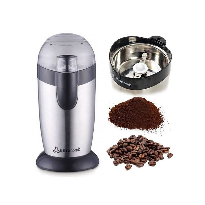 Te presentamos el molinillo eléctrico ULTRACOMB MO-8100ª, Su poderoso motor de 120Watts y cuchillas de acero inoxidable muelen sin esfuerzo granos de café, nueces, pimienta, hierbas y especias secas como almendras. Un acabado de metal liso y base antideslizante lo convierte en una incorporación eleg...