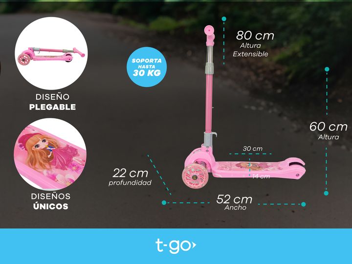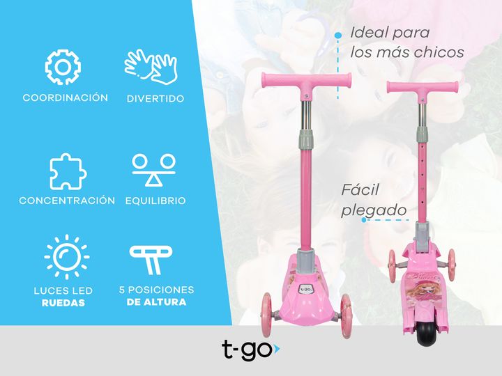 Monopatín infantil para niños plegable con luces led y altura regulable - Edad recomendada: Hasta 3 años - Novedoso modelo plegable - Marca : T-go - Peso soportado: Hasta 30 kg - Luces led en las ruedas que se activan por aceleración - 5 alturas regulables (60 cm, 65 cm, 70 cm, 75 cm y 80 cm) - Mate...