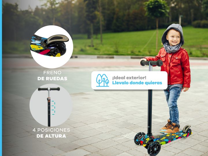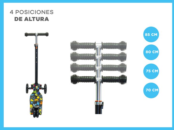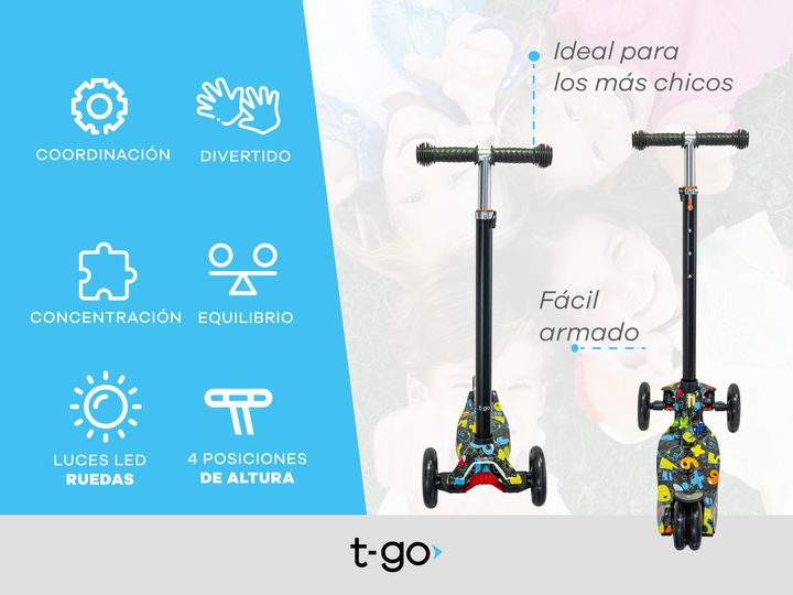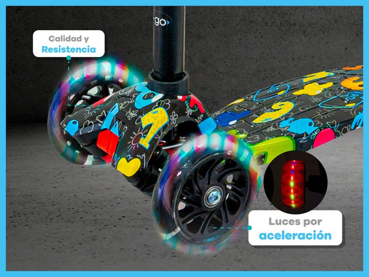 Monopatin T-go Urban Infantil con luces Led hasta 14 años Color Negro Numbers