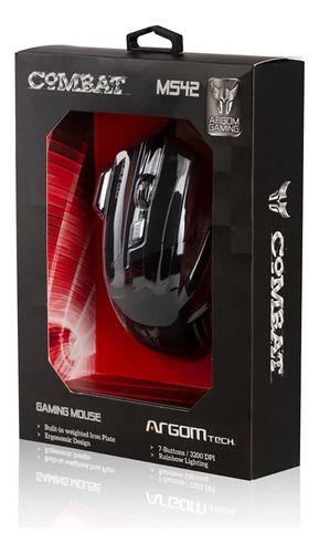 MOUSE USB CON CABLE PARA JUEGOS DE COMBATE ARGOMTECH MS42 - ARG-MS-2042BK - A00439 Como parte de nuestra colección Gaming, el Combat Gaming Mouse es todo lo que necesitas para mejorar tu juego. Recarga, apunta y dispara con este mouse para juegos especialmente diseñado que tiene una construcción rob...