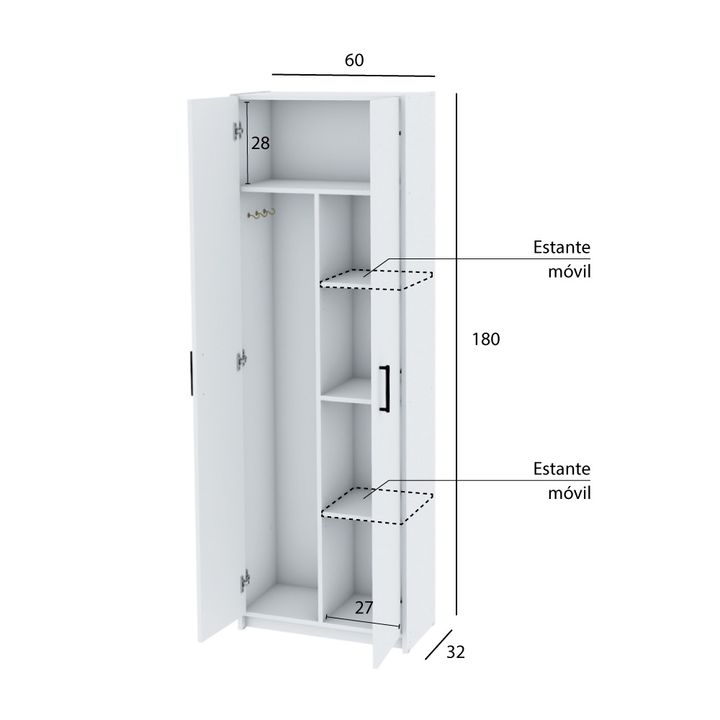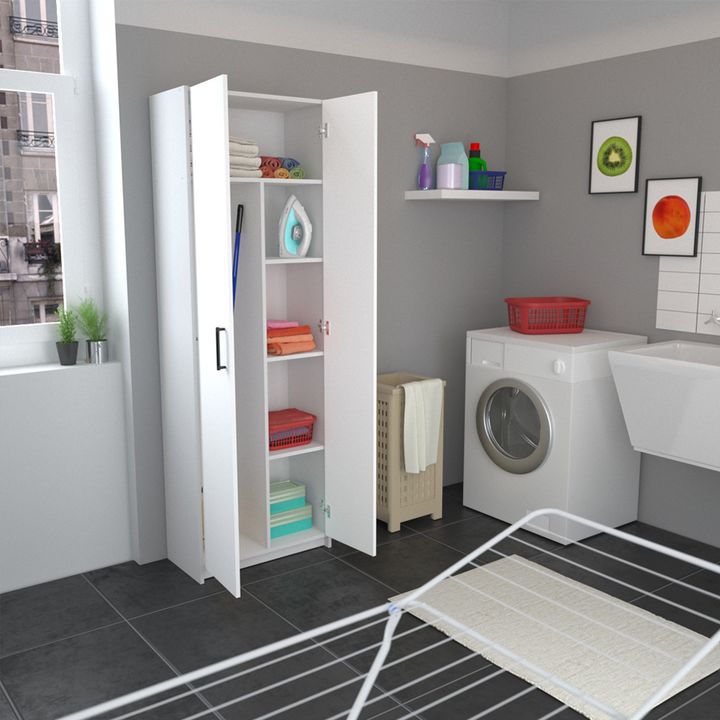 Mueble Organizador Despensero Escobero 2 Puertas 4 Estantes Modelo: DIS6BL Caracteristicas: • Saber donde encontrar los elementos de limpieza te permite ahorrar tiempo y espacio. MATERIALIDAD • Los productos están desarrollados a partir de placas de aglomerado melaminizado proveniente de árboles de ...