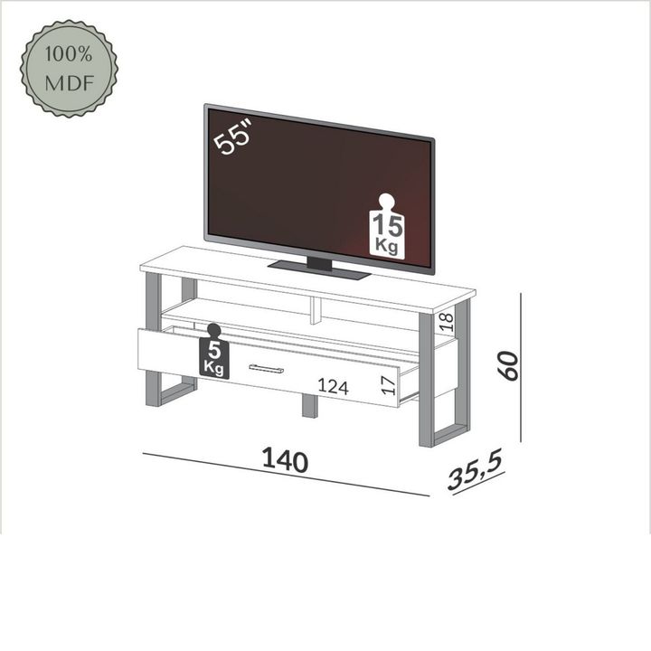 Mueble Rack TV 140 CM MDF con 2 cajones y estante Mix Match
