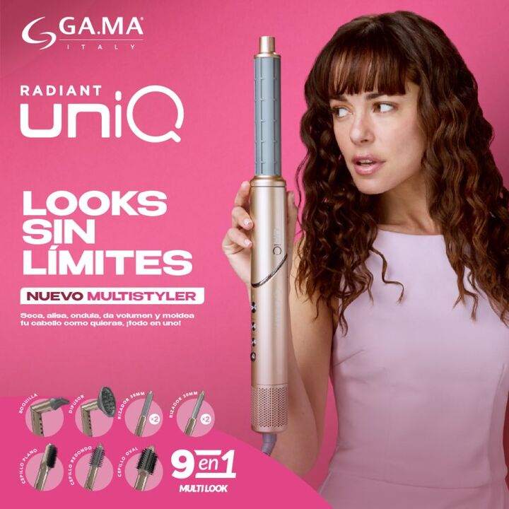 MULTISTYLER UNIQ RADIANT PK GAMA - 9 funciones en 1: seca, modela, alisa, riza, ondula, da volumen, suaviza y define. - Tecnología Efecto Coanda: atrae automáticamente el cabello para lograr rizos definidos y peinados duraderos. - Motor Digital Brushless de alta velocidad (100.000 rpm). - Configurac...