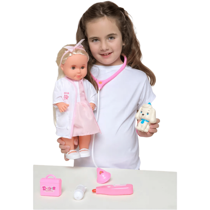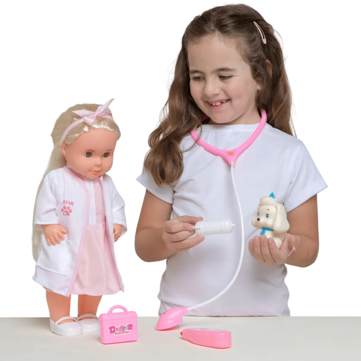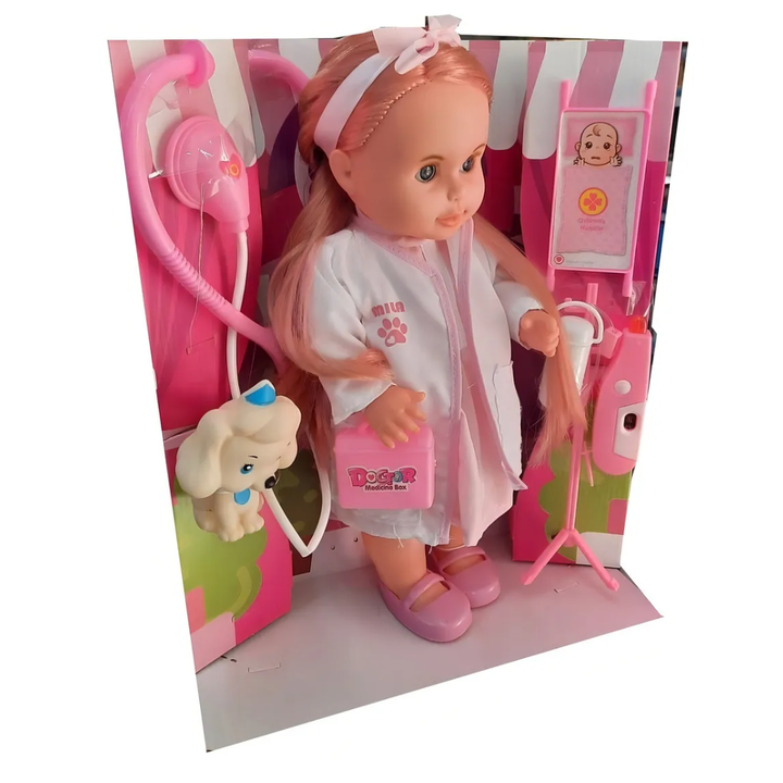 Muñeca Cariñito Mila veterinaria 40cm con mascotas Muñeca articulada para movimientos realistas durante el juego. Incluye estetoscopio para cuidar la mascota. Recomendación de edad entre 3 a 8 años. Hecha de plástico de alta calidad. Cabello liso y rubio con ojos grises. La muñeca Mila Veterinaria e...